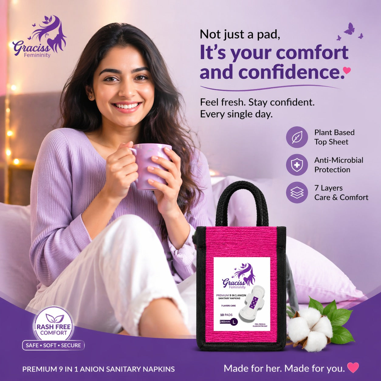 At Graciss Femininity, we believe feminine care should go beyond basic protection. It should empower confidence, comfort, and peace of mind—every single day.